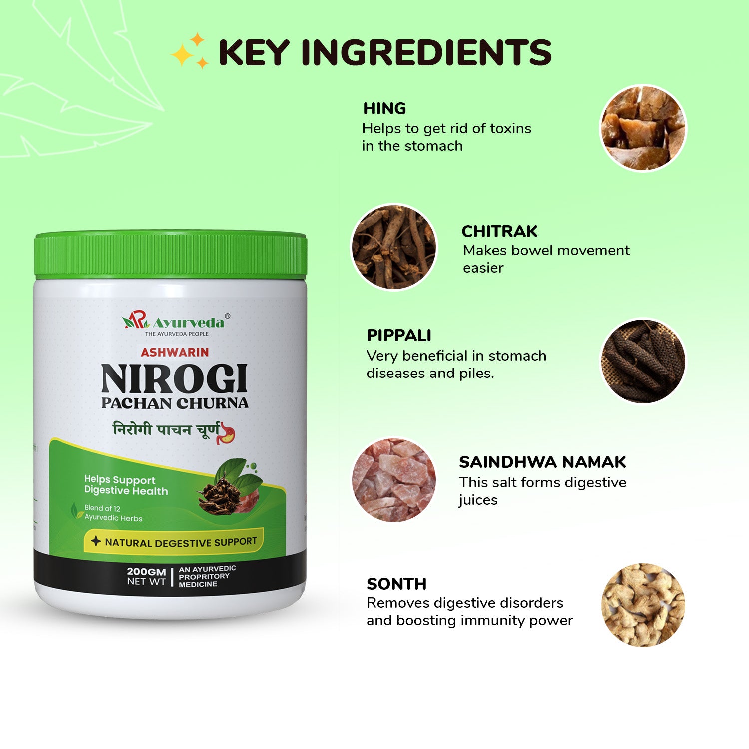 - Take one spoon of Nirogi Pachan Churna with a glass of lukewarm or normal water before bedtime.
